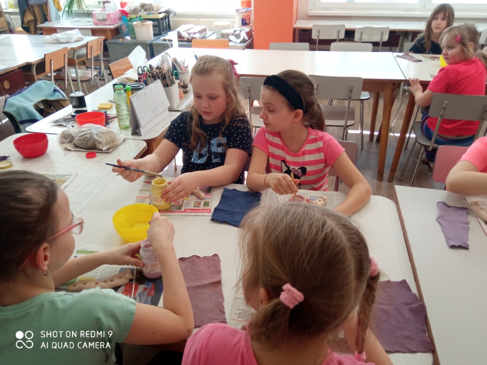 Ve dnech 2. 3. a 23.3. navštívily děti z naší družiny nedalekou keramickou dílnu v Domečku. Pod vedením paní Květy si děti vymodelovaly žížaly a druhou návštěvu jim glazurou nanesly krásné jarní barvičky. Výrobky se povedly opravdu všem. Všichni se těšíme na další návštěvu.