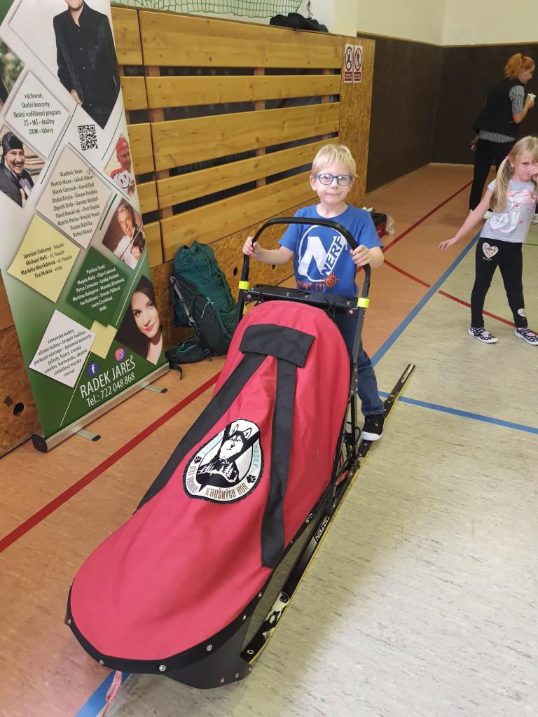 Dozvěděli jsme se spoustu zajímavých informací o životě psů plemene Husky, měli jsme možnost prohlédnout si sáňky a další vybavení a nakonec jsme obě psí slečny dostatečně pomazlili.