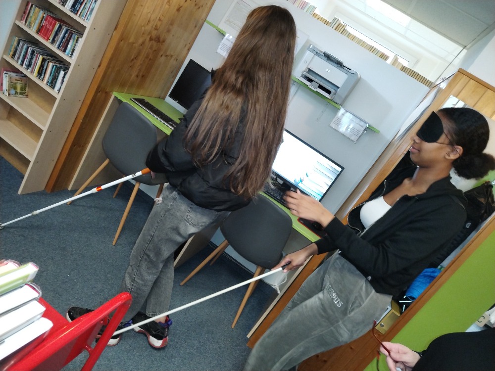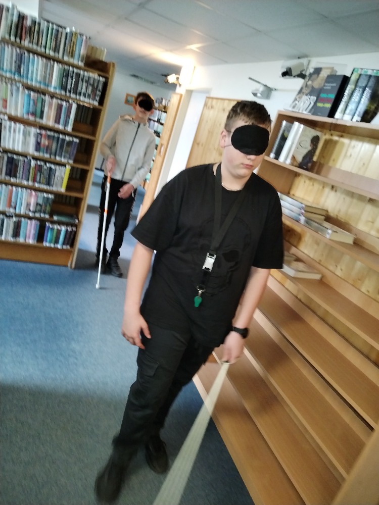Dne 12. 3. jsme v rámci společenskovědního semináře navštívili městskou knihovnu - pobočka Březenecká a zde jsme měli domluvenu besedu se SONS - jde o Sjednocenou organizaci nevidomých a slabozrakých. Žáci tříd VII. ABC se seznámili s touto organizací a vyzkoušeli si na vlastní kůži pomůcky, které používají takto postižení lidé. Dívali se na svět 10 druhy brýlí a formou simulace prožívali podobná zraková postižení. Neexistuje totiž pouze slepota, ale i zelený a šedý zákal, trubicové vidění (lidé vidí jako by se koukali do dalekohledu) a podobné zrakové vady. Ačkoli ztráta zraku nebo vážné poškození zraku znamená v životě velkou změnu, život tím nekončí. Členky této organizace nám ukázaly i pomůcky, které nevidomí a slabozrací používají a to tabulky s Braillovým písmem, mluvicí chytré hodinky, pomůcku k nalévání nápojů a v neposledním mluvicí zařízení k rozpoznání barev při vybírání oblečení. Děti beseda moc bavila, vyptávaly se a některé dokonce vyprávěly i vlastní zkušenosti z rodin, kde mají jejich členové podobná postižení. Nakonec si se zavázanýma očima vyzkoušely chůzi s hůlkou po knihovně.