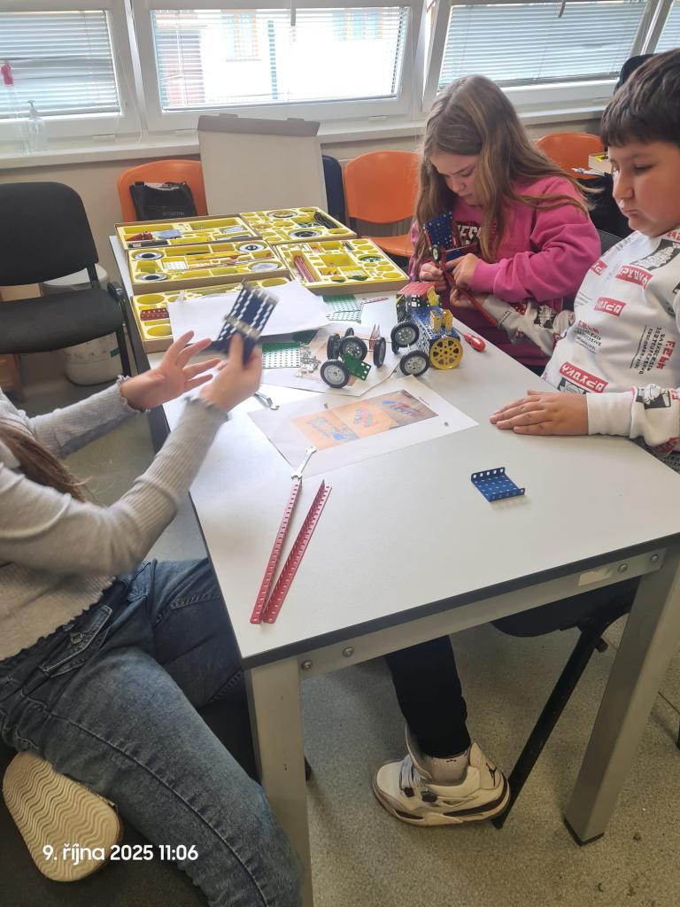 Ve čtvrtek 9.10.2025 proběhla soutěž T-Profi. Naše družstvo složené z žáků třídy 5.B si vedlo skvěle. Soutěžní zadání nebylo jednoduché – účastníci měli za úkol postavit funkční model lokomotivy z polytechnické stavebnice Merkur.